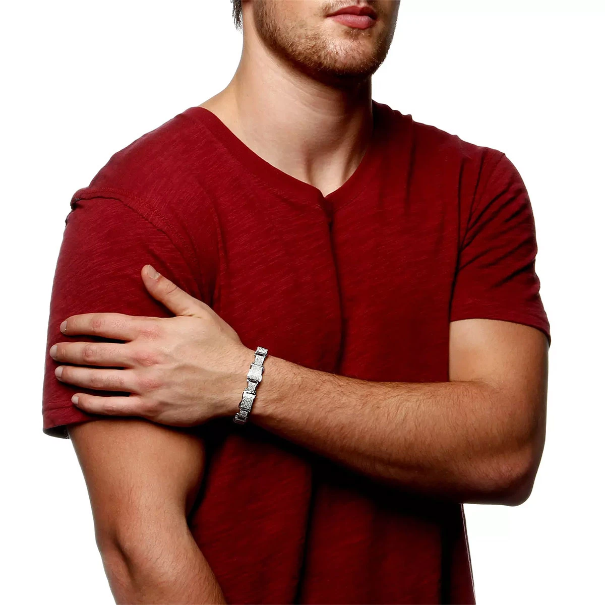 Affordable Men’s Bracelets: This 10K Gold Pave Diamond Bracelet weighs approximately 21 grams and showcases 4.60 ctw of sparkling round diamonds. Featuring a fully paved design and a highly polished gold finish, this men’s diamond bracelet is available in 10K white, yellow and rose gold.