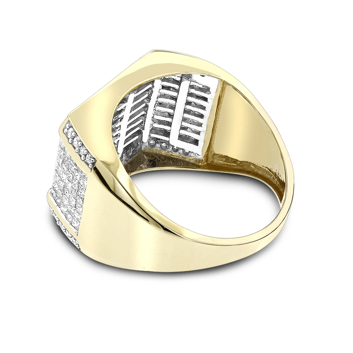 Men’s 14K Yellow Gold Round Princess Diamond Ring 2.25