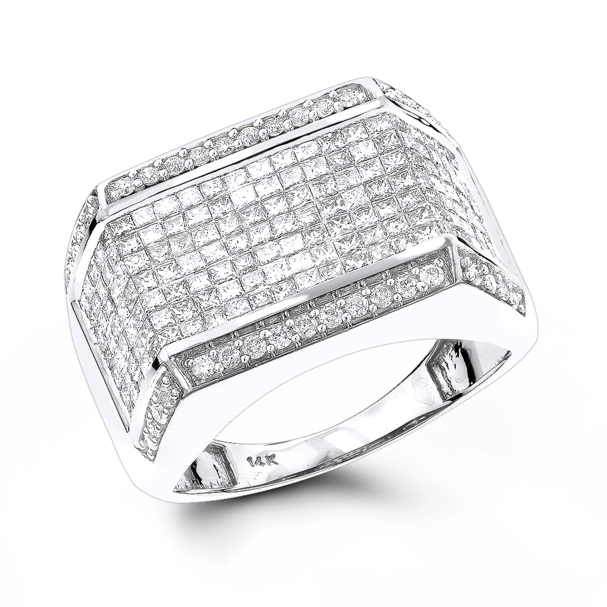 This Men’s 14K Gold Round Princess Diamond Ring 2.25 is the perfect way to show your commitment and love. Crafted with 14K gold in your choice of white, yellow, or rose, this ring is sure to make a statement. The 2.25 carat diamond is set in a prong setting with an invisible setting type, giving it a sleek and modern look. The diamond has a SI clarity, ensuring that it is of the highest quality.This ring is perfect for any special occasion, whether it be an engagement, wedding, or anniversary. The 14K gold is strong and durable, ensuring that it will last for years to come. The diamond is sure to sparkle and shine, making it a beautiful addition to any outfit. The ring is also comfortable to wear, making it perfect for everyday wear.With its sleek and modern design, it is sure to make a statement. The 14K gold is strong and durable, and the diamond is of the highest quality. This ring is perfect for any special occasion, and is comfortable to wear for everyday wear. Show your commitment and love with this beautiful and timeless ring.