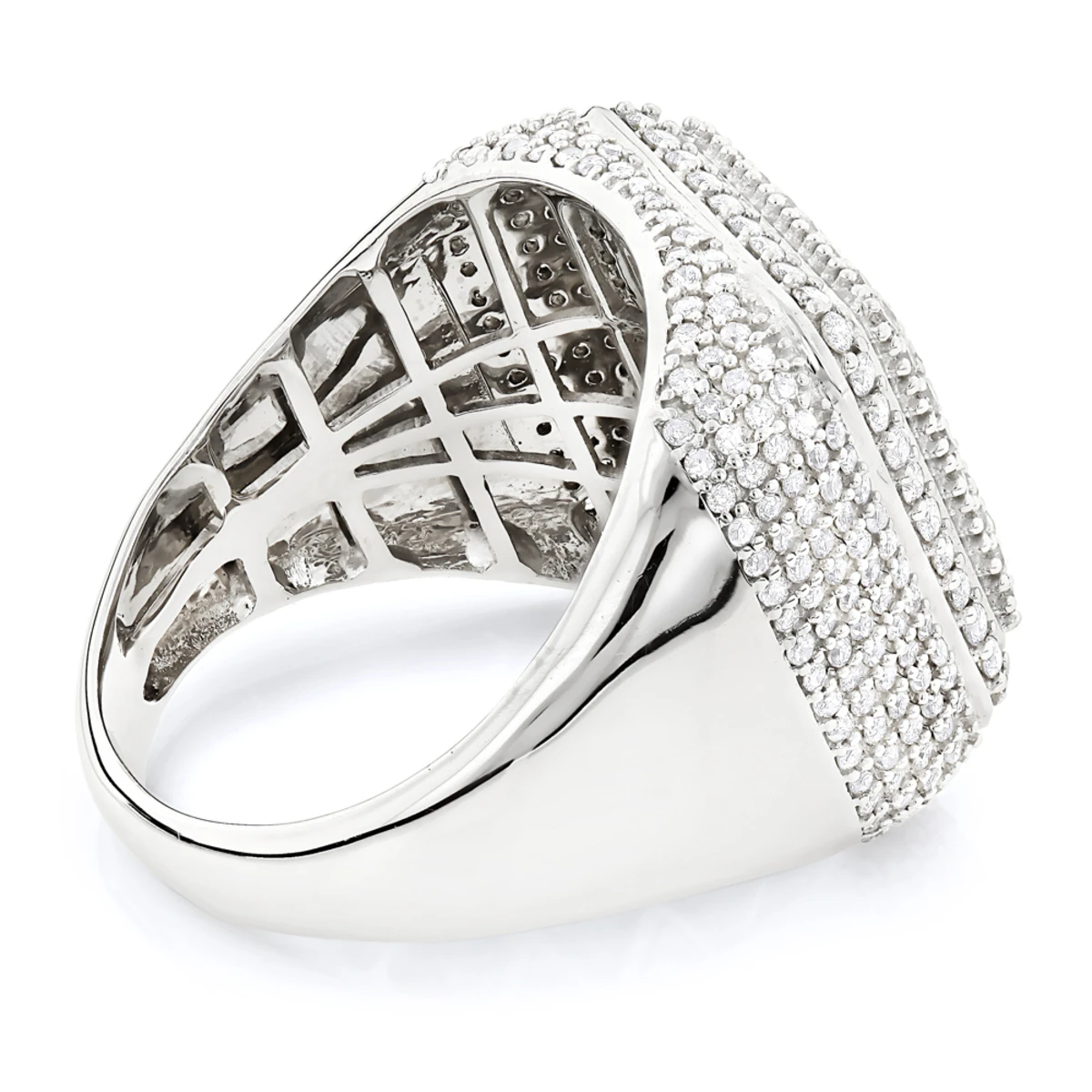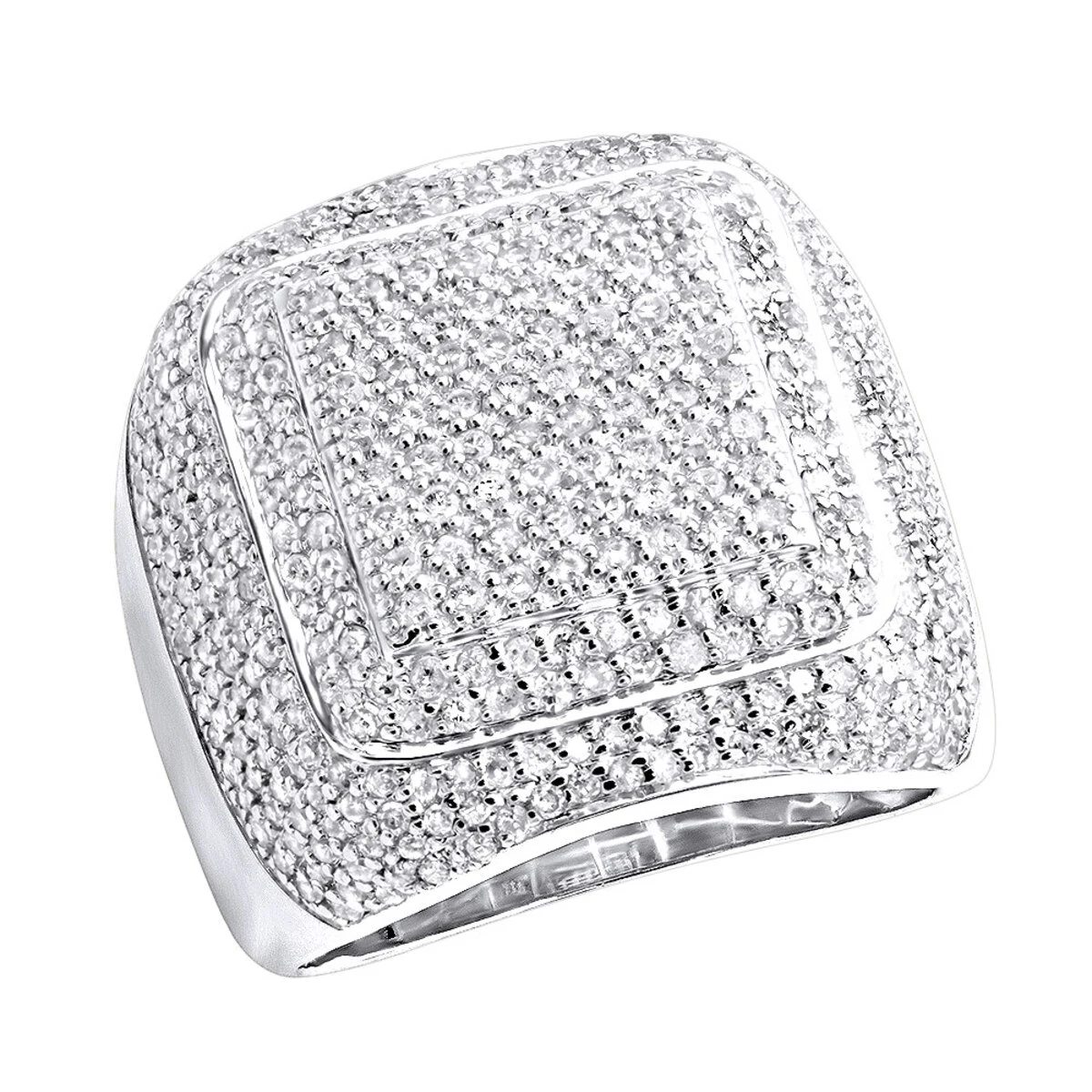 Affordable Men’s Diamond Rings! This 14K Gold square design ring weighs approximately 15 grams and showcases 3.44 ctw of sparkling pave-set diamonds. Featuring a luxurious design and a highly polished gold finish, this men’s diamond ring is available in 14K white, yellow and rose gold.