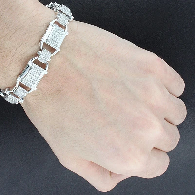 Men’s White And Black Diamond Bracelet 0.90ct Sterling Silver