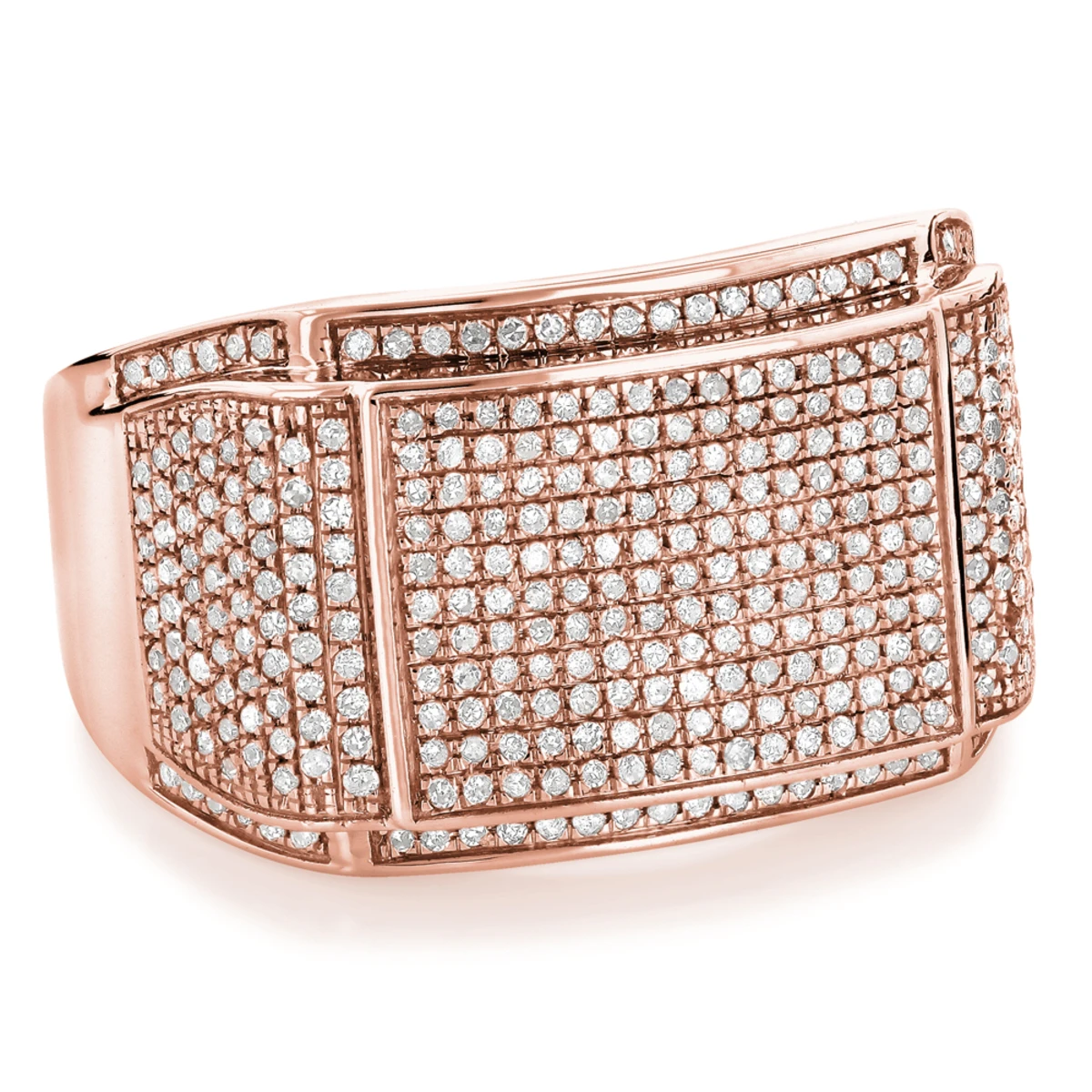 This Men’s Diamond Band 10K Gold Wedding Ring weighs approximately 7 grams and showcases 0.8 carats of sparkling pave set round diamonds. Featuring a wide frame and a highly polished gold finish, this men’s diamond ring is available in 10K white, yellow and rose gold.