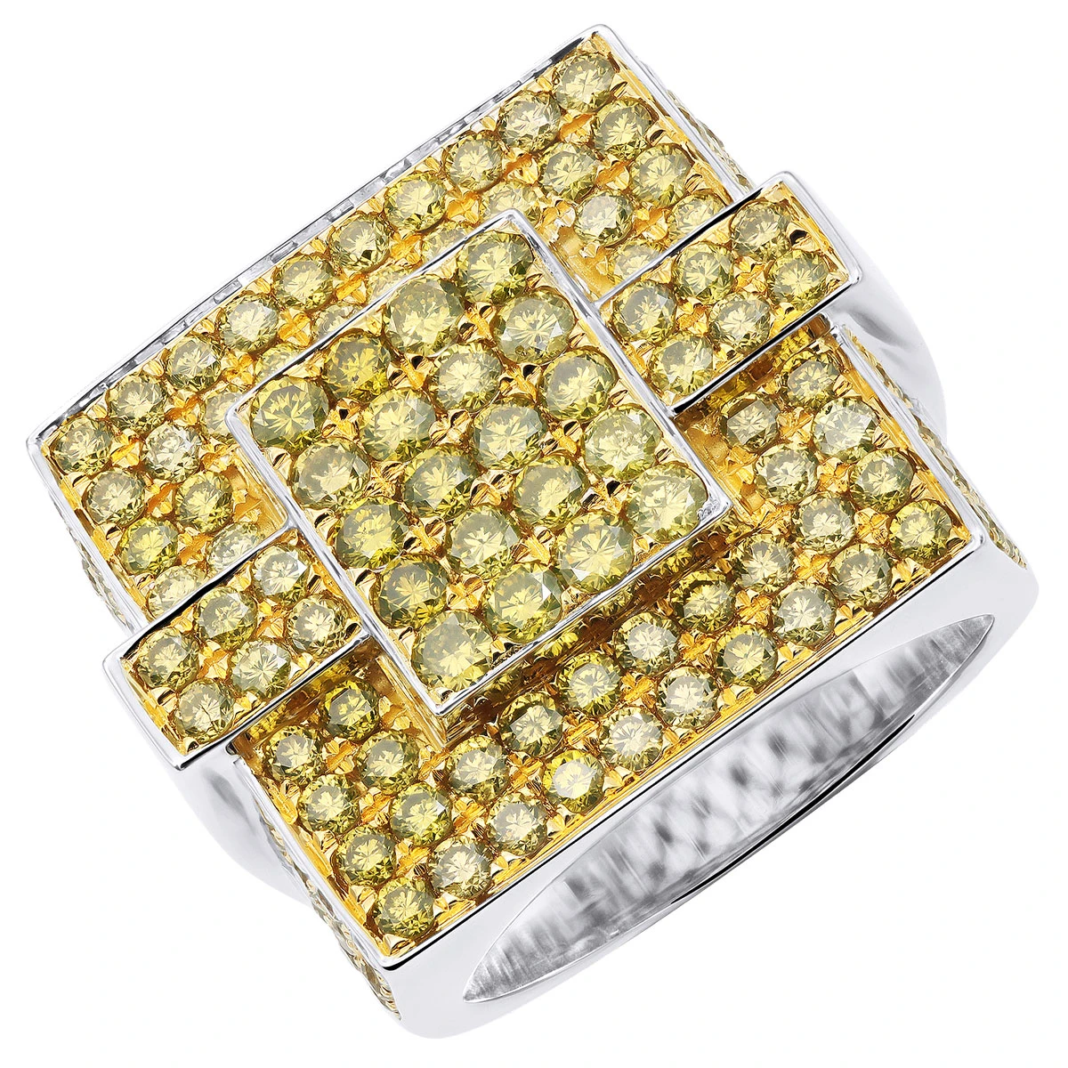 Men’s Diamond Ring With 4 Carats Of Yellow Diamonds 14K White Gold