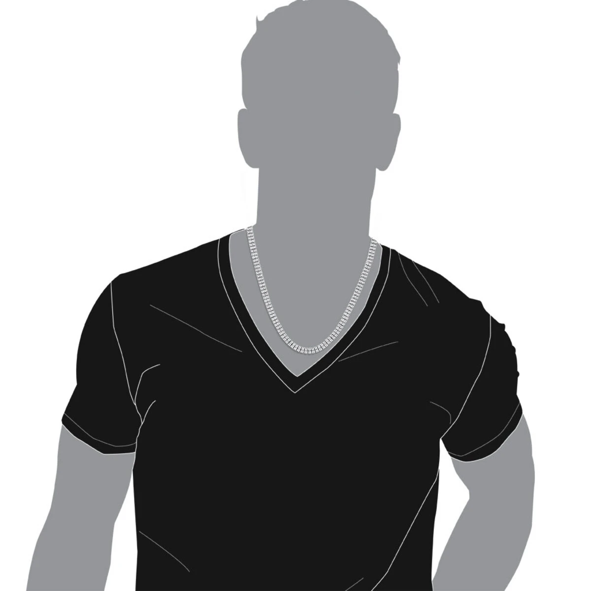 From our men’s diamond chains collection this affordable men’s diamond tennis necklace is made in real sterling silver and features 2 rows of genuine diamonds in illusion setting for incredible shine. This sterling silver diamond chain for men features a secure box lock with two safety pins and is 1/4 inch (6mm) wide. The listing is for necklace in 22 or 24 inches long but can also be made in other lengths as a custom order.