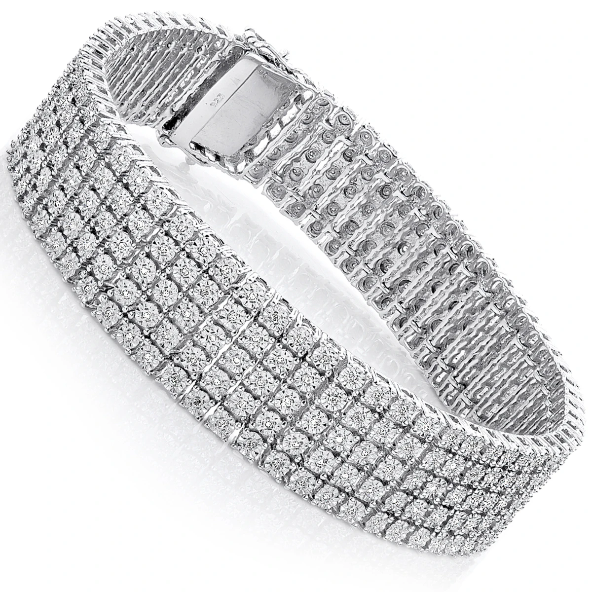 Men’s Sterling Silver 5 Row Diamond Bracelet 0.81ct