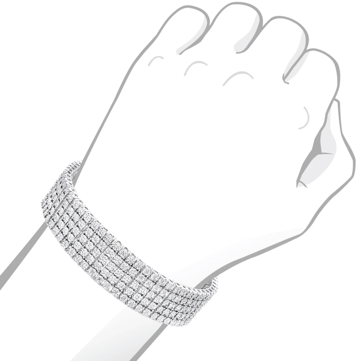 Affordable Men’s Sterling Silver Bracelets: This 5 Row Diamond Bracelet weighs approximately 43 grams and showcases 0.81 carats of genuine diamonds. Featuring a luxurious cuff style and a luxurious rhodium plating for extra shine, this men’s diamond bracelet is a great alternative to gold jewelry.
