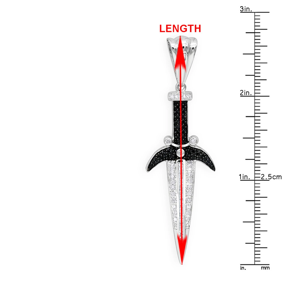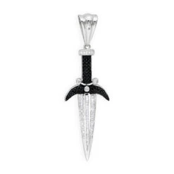 This Men’s Sterling Silver Sword Pendant with Diamonds weighs approximately 7 grams and showcases 0.6 carats of white and black diamonds. Featuring a unique design and a luxurious rhodium plating for extra shine, this men’s diamond pendant is a great alternative to gold jewelry. Please note: the chain is for illustration purposes and must be purchased separately. You also can personalize this piece or check we’ve already made and create your own design.