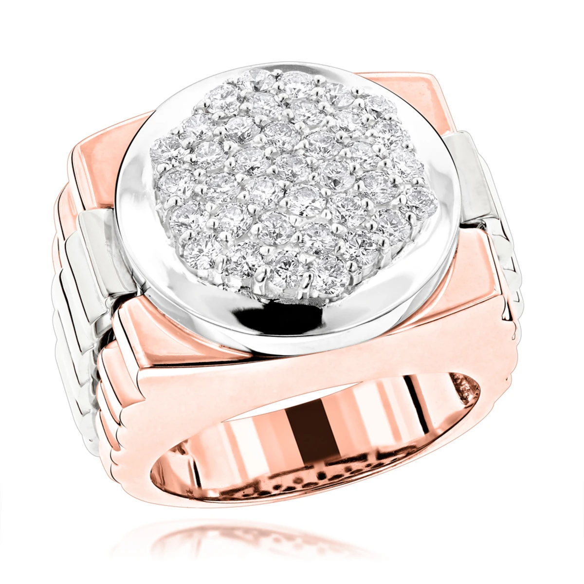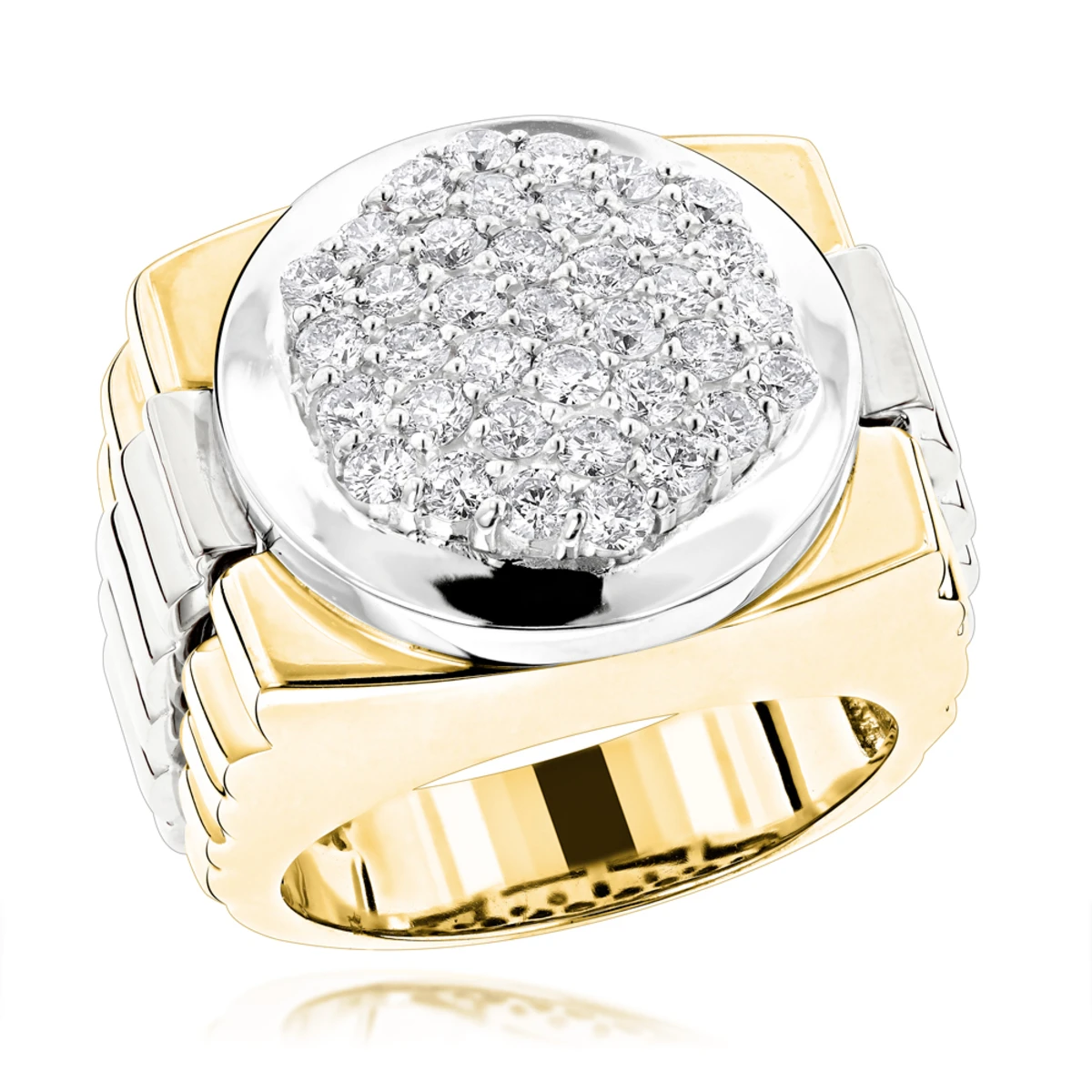 Men’s Two Tone 14K White Gold Diamond Ring With Pave Round Diamonds 2.04ct