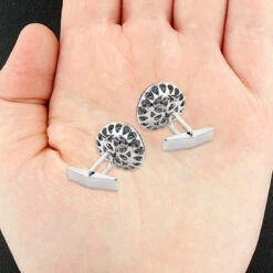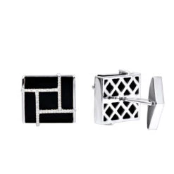 Black Onyx And Diamond Fancy Cufflinks For Men 14K White Gold