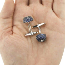 Diamond And Sapphire Cufflinks For Men 14K White Gold Unique Gift 4.5ct