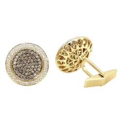 Round Champagne And White Diamond Men’s Cufflinks 14K White Gold