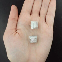 Men’s Single Princess Cut Diamond Stud Earring 14K White Gold 1ct
