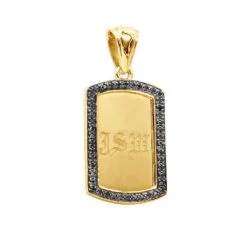 Small Engravable Dog Tag Pendant 14K White Gold W Black Diamonds 0.25ct