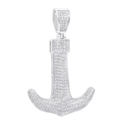 Large 10K Yellow Gold Diamond Anchor Pendant For Men 1.25 Carats