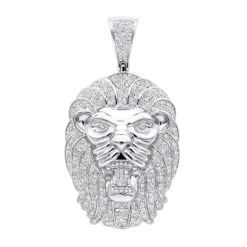 10K Yellow Gold Lion Head Pendant With Diamonds For Men 1.2ct