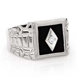 Black Onyx And Diamond Fancy Cufflinks For Men 14K White Gold