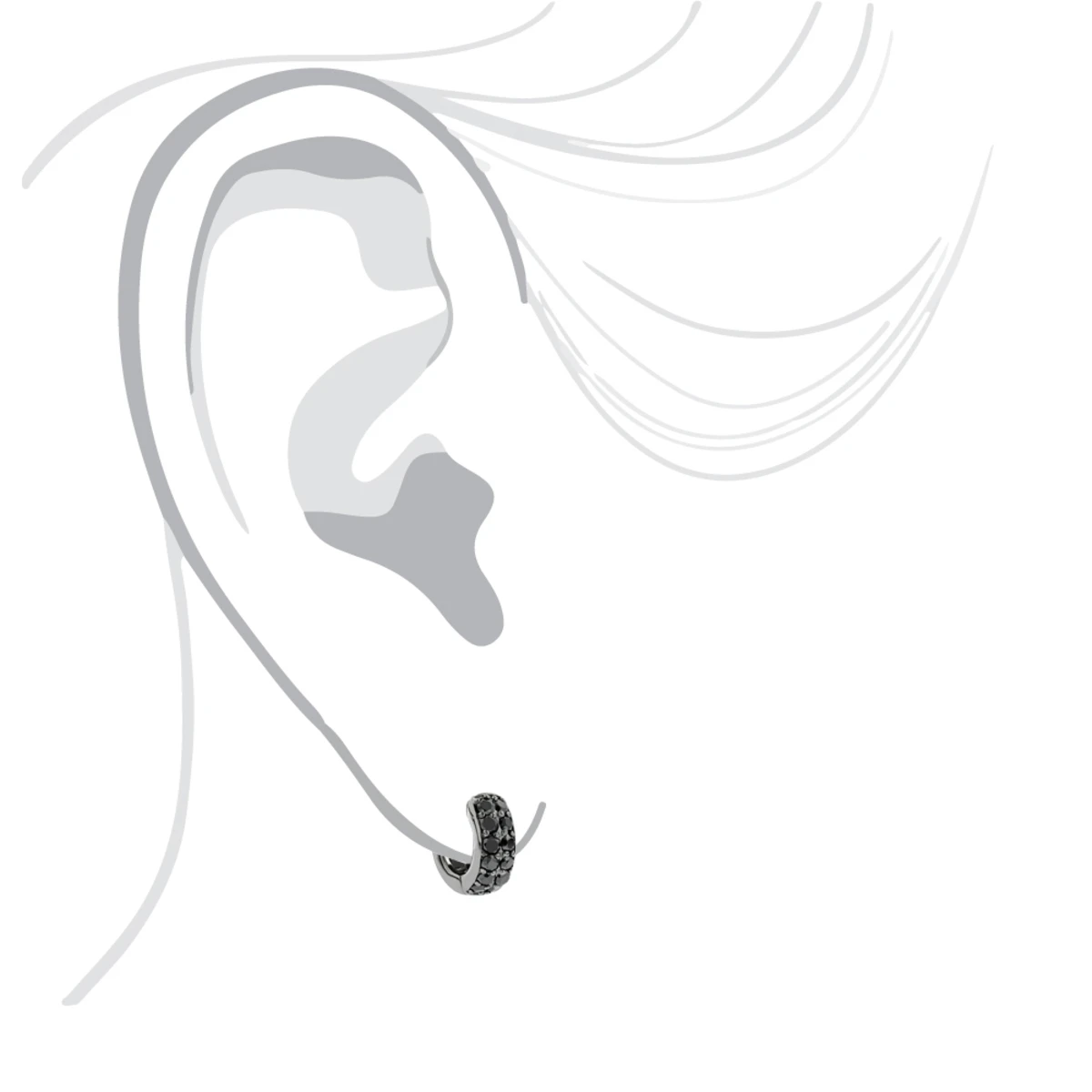 One Carat Black Diamond Hoop Earrings! These 14K Gold Diamond Huggie Earrings weigh approximately 6 grams and showcase 1 carat of high quality black round diamonds, each masterfully set in black rhodium plated 14k gold frames. Featuring a classic 2-row design, these exquisite mini hoop black diamond earrings can be customized with any color diamonds. Please call us at 212-398-3123 if desired option is not listed.