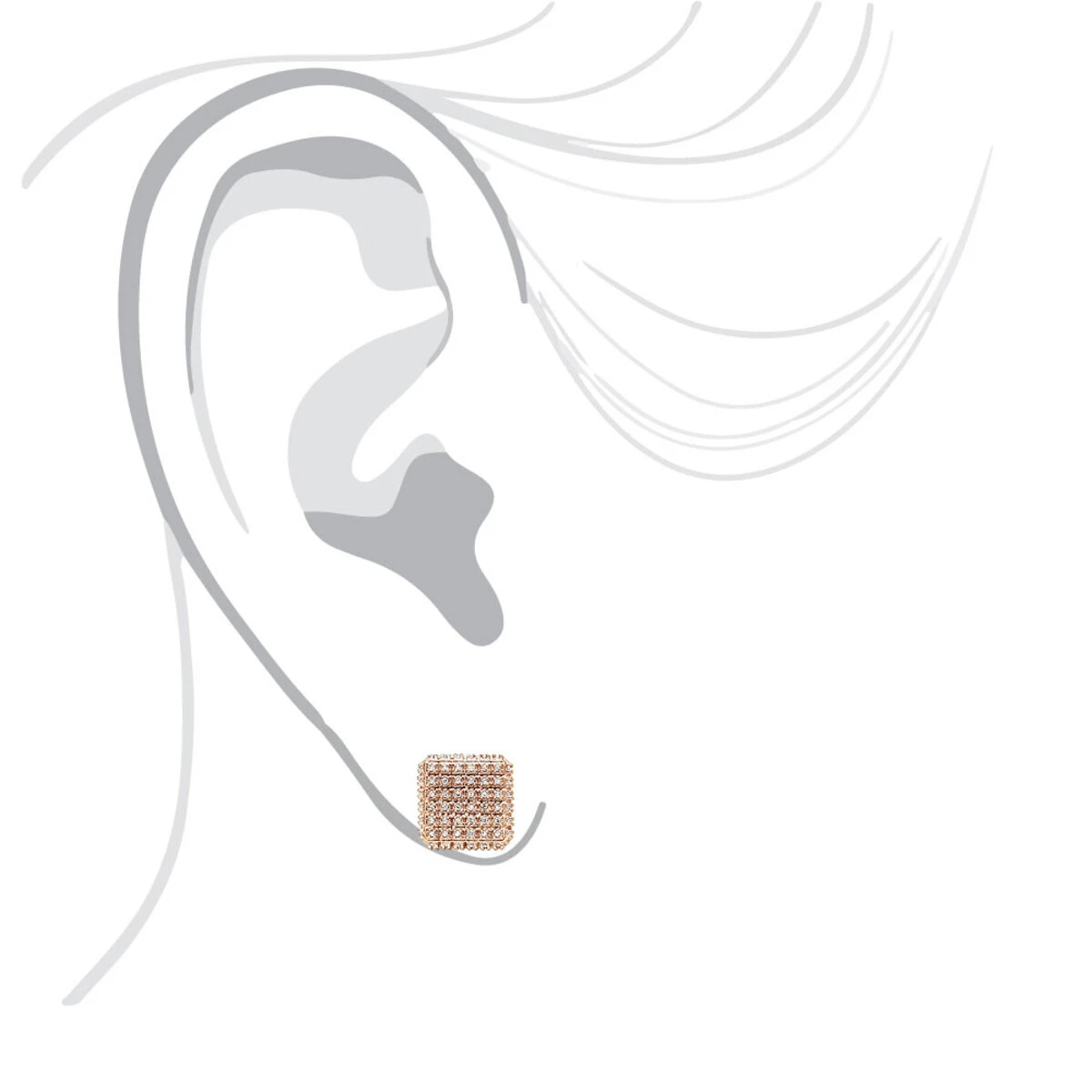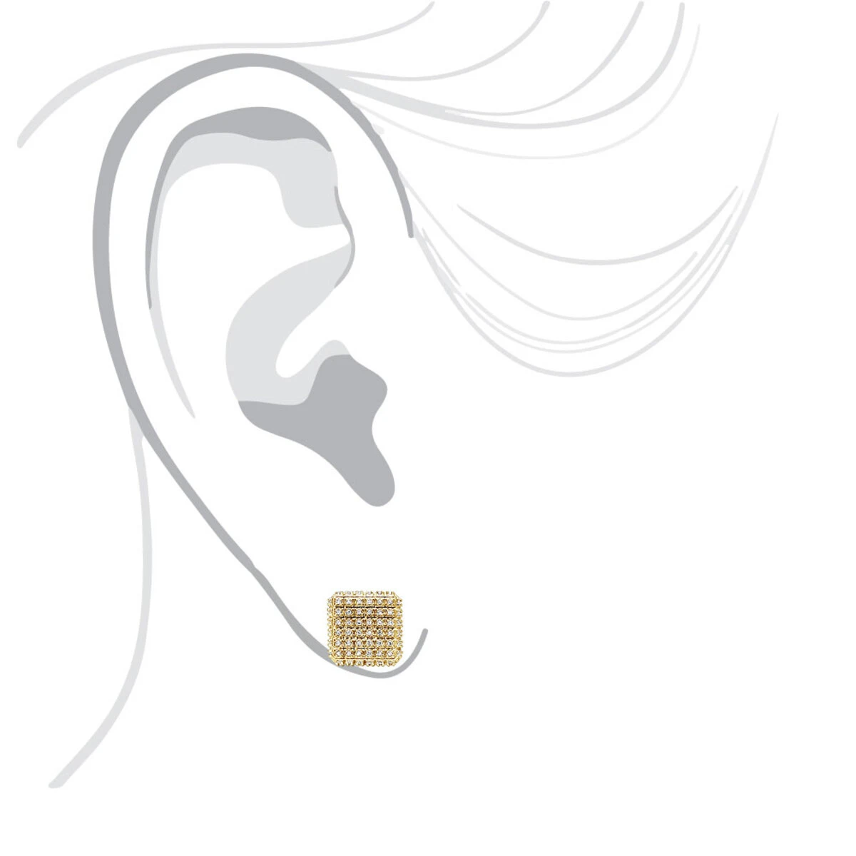 Pave Diamond Stud Earrings Under 300 – 10K White Gold Square Studs 0.33ct