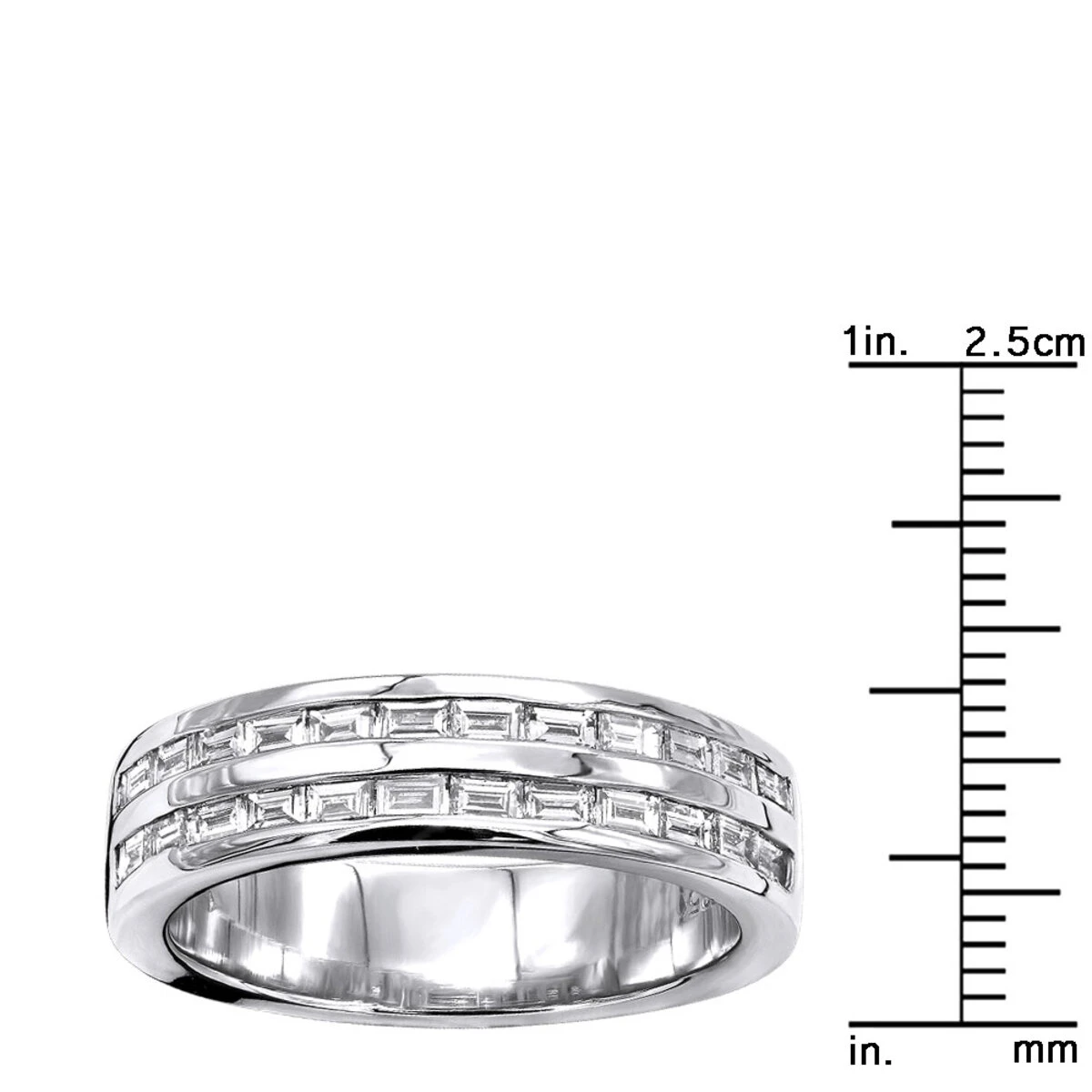 This Platinum Baguette Cut Diamond Men’s Wedding Ring features 1.10 carats of baguette cut diamonds (22 diamonds). This diamond wedding ring is available in Platinum, 18k or 14k yellow, rose, white gold, various sizes, and can be customized with any color and quality diamonds. Please note: it will take us 3-5 business days to make this ring for you so please plan accordingly. Please contact us at 212-398-3123 if your size or desired option is not listed.