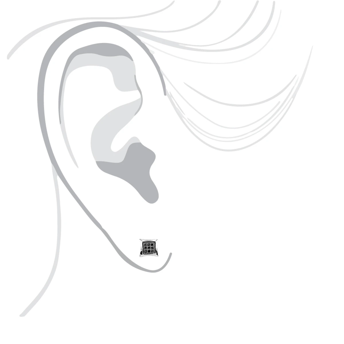 From out diamond earrings collection These Real Black Diamond Stud Earrings features unisex square kite design which can be worn by both men and women, the earrings are made in 925 Sterling Silver showcasing 0.1 carats of fancy pave set black diamonds and screwback closures for secure wear.