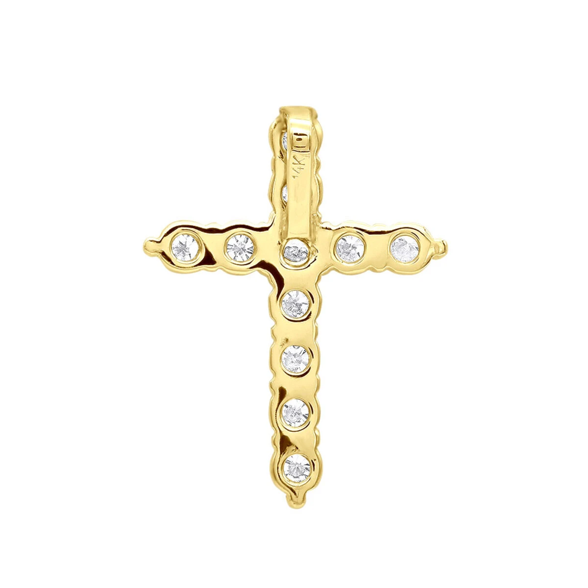 From our diamond pendants collection This real diamond cross necklace in solid 14k gold features a classy design with 11 large, high quality sparkling round diamonds with a total carat weight of 2.5 carats. This diamond cross pendant is a perfect size at 1 3/16in. (29mm) length and has a hidden bail on the back, the cross is available in 14k white gold, yellow gold and rose gold as well as 18k gold and Platinum as a custom order. We can also custom make this cross for you in any size with any color (black, yellow, blue, pink, etc) and quality diamonds or gemstones (rubies, sapphires, emeralds etc.). Please contact us at 212-398-3123 if you would like to customize this amazing cross. You also can personalize this piece or check we’ve already made and create your own design.