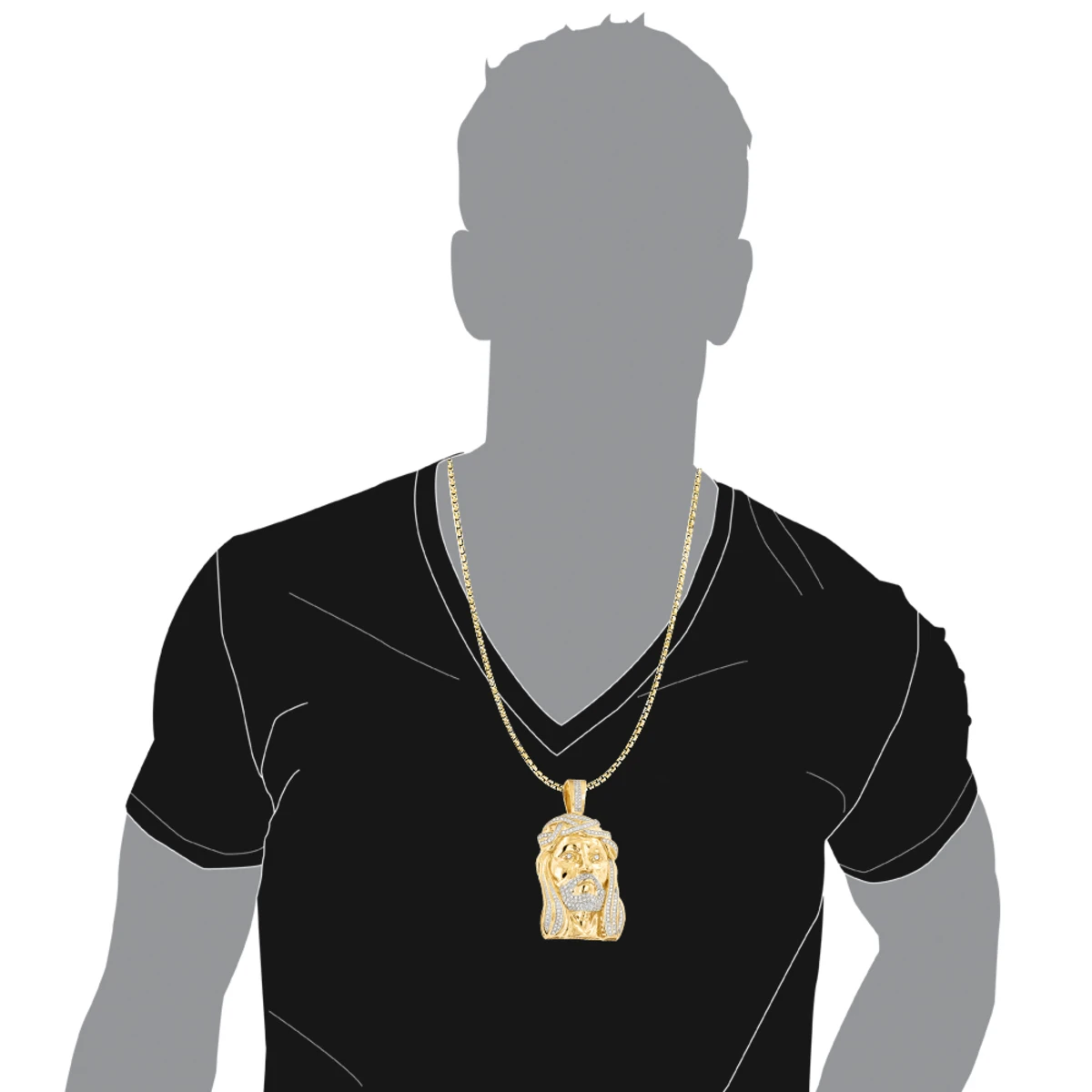 Real Hip Hop Jewelry! This large 14k Gold Diamond Jesus Face Pendant is over 3 inches long (with bail) features amazing 7 carats of dazzling round diamonds. Showcasing a classic design and a highly polished gold finish, this men’s diamond Jesus head pendant is available in 14K white, yellow and rose gold, and can be custom made with different color diamonds. You also can personalize this piece or check we’ve already made and create your own design.