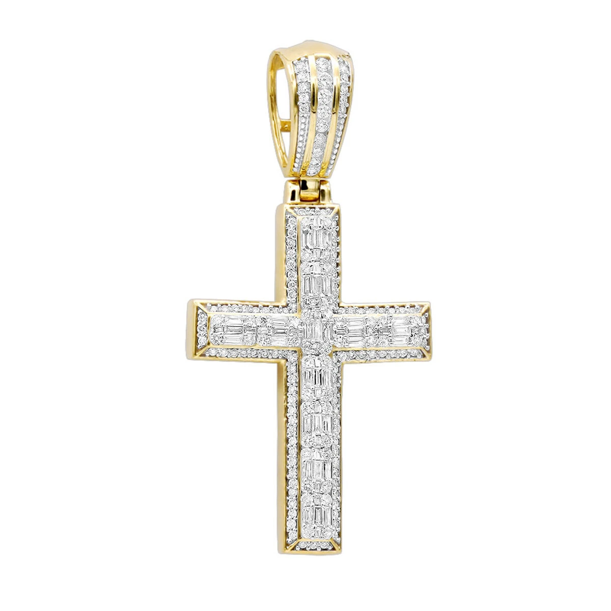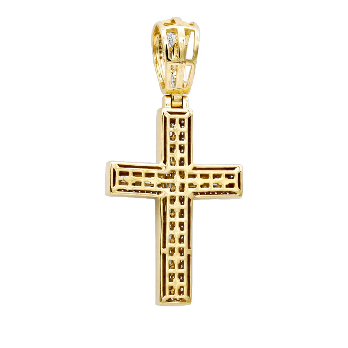 Religious 14K Yellow Gold Large Baguette & Round Diamonds Men’s Cross 1.5ct