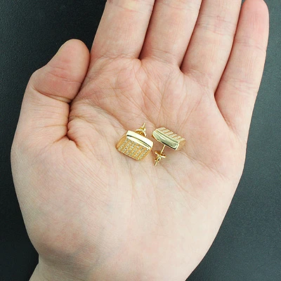 Real Black Diamond Stud Earrings Sterling Silver Square Kites 0.1ct