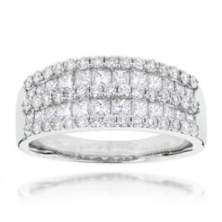 This Women’s Round Princess Cut Diamond Ring in 14K gold showcases 1.87 carats of sparkling diamonds and is available in 14K white, yellow and rose gold.