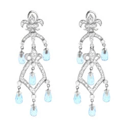 14K Yellow Gold Diamond Chandelier Earrings Blue Topaz 0.55ct