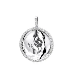 Engravable 14K Yellow Gold Diamond Circle Pendant For Women 1 Carat Medallion