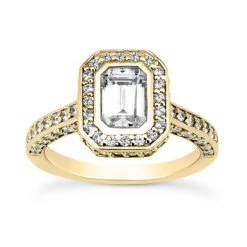 Halo 18K White Gold Round And Emerald Diamond Engagement Ring 2.2ct