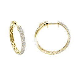 Ladies 14K White Gold 1 Inch Diamond Hoop Earrings Small 0.9ct