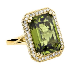 Ladies 14K White Gold Peridot Quartz Gemstone Diamond Cocktail Ring 1.75ct