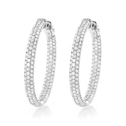 Large 5 Carat Diamond Hoop Earrings For Women 14K Yellow Gold Inside Out Style