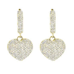 14K White Gold Dangle Diamond Heart Earrings 3ct By LUXURMAN