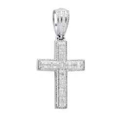 Religious 14K White Gold Round Diamonds Cross Pendant For Men 1.4ct