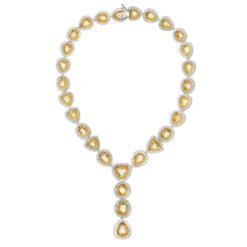 Royal Style Ladies Yellow And White Diamond Necklace 18K Gold 53.17ct