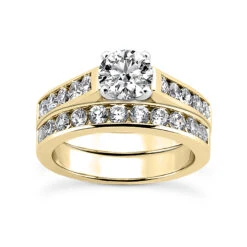 14K White Gold Designer Prong Set Diamond Engagement Ring Set 3.20ct