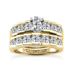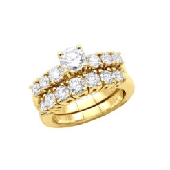 14K White Gold Designer Round Diamond Engagement Ring Set 1.55ct