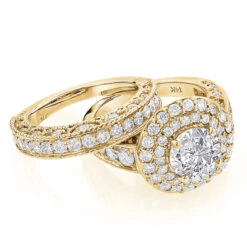 14K White Gold Diamond Unique Engagement Ring Mounting Set 3ct
