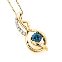 14K White Gold La Minor Blue Diamond Pendant For Women With Chain Necklace