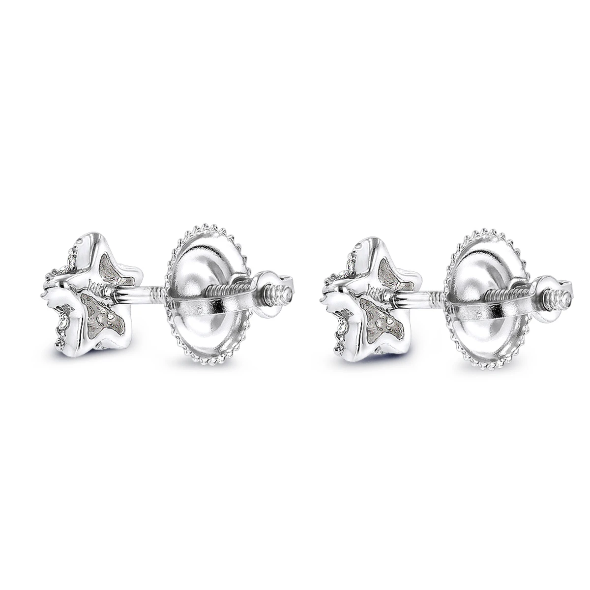 Small Diamond Star Earrings Studs 0.11ct 14K White Gold