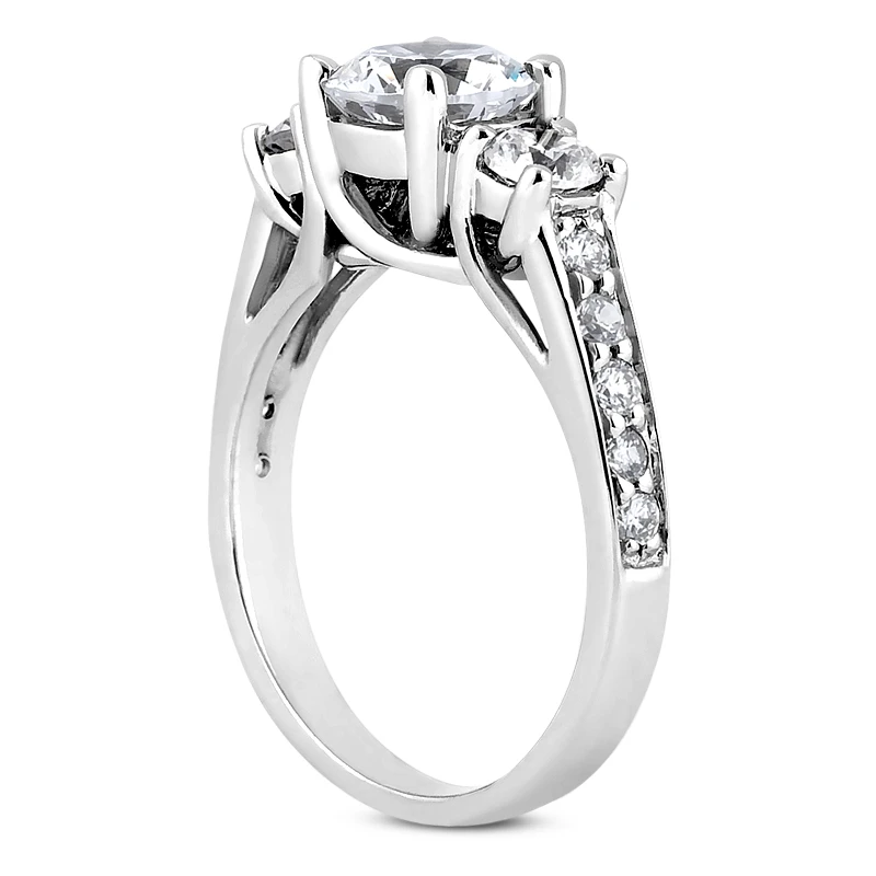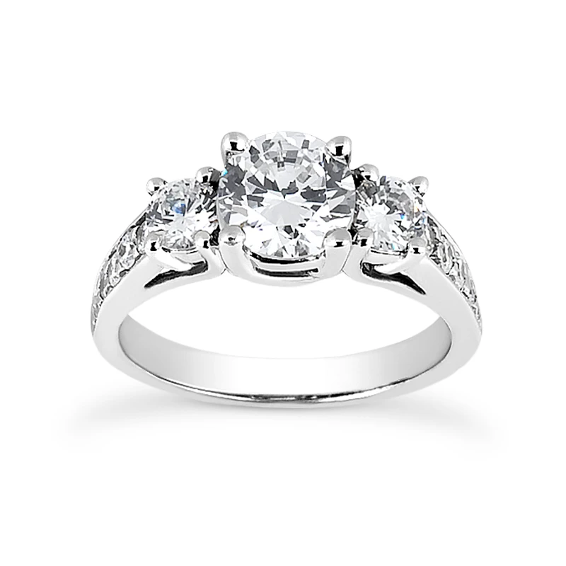 Thin 18K White Gold Diamond Three Stones Engagement Ring 1.05ct 2.94mm