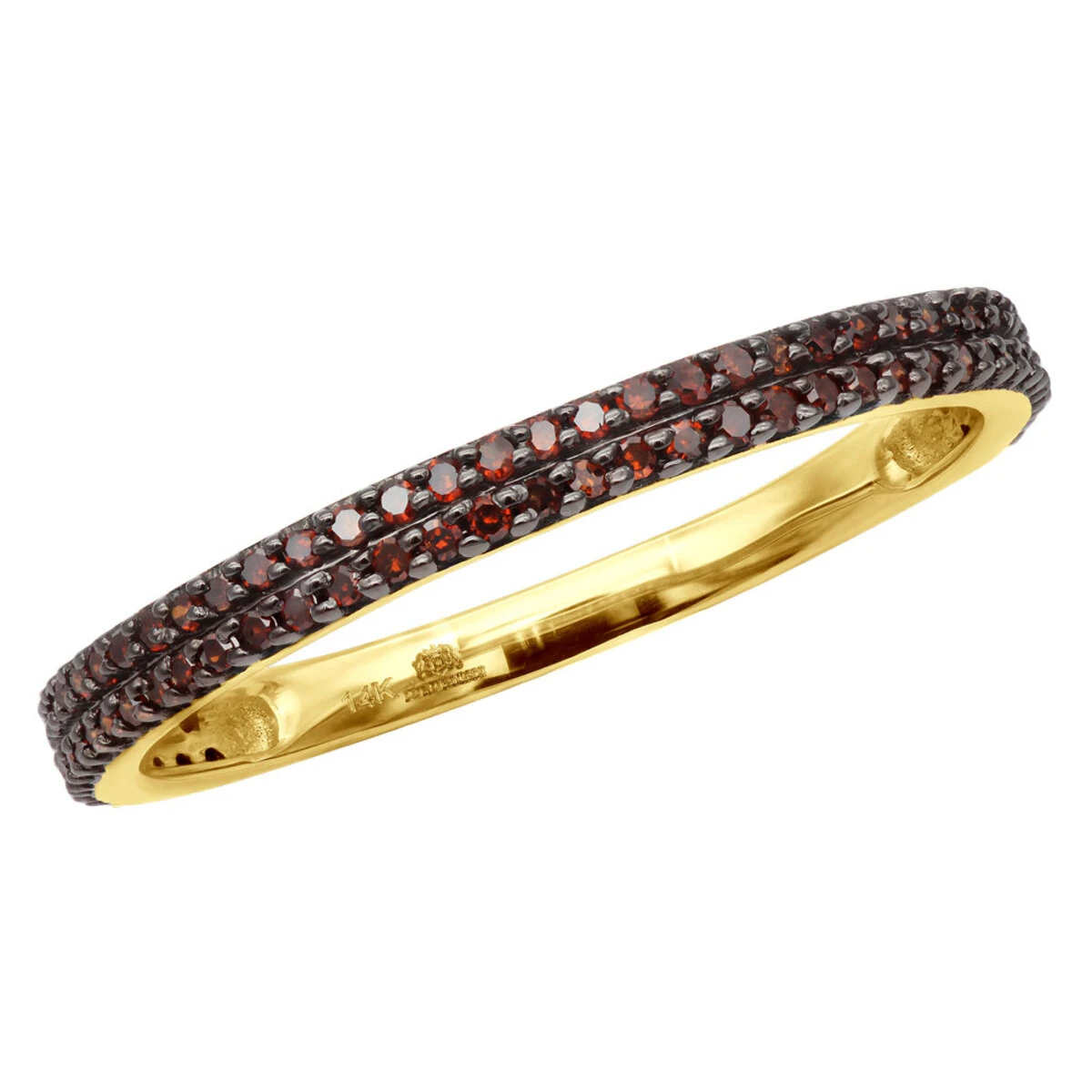 This Stackable Ladies Red Diamond Ring in 14K Gold weighs approximately 2 grams and showcases 0.34 carats of round diamonds. Featuring a fabulous design and a highly polished gold finish, this ladies red diamond ring is available in 14K white, yellow and rose gold. Wear it by itself or mix and match with other rings in different gold and diamond colors.