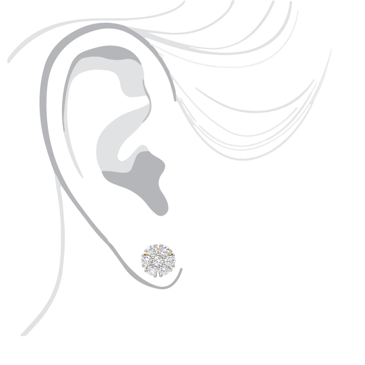 Very Unique 1 Carat Diamond Earrings Studs by Luxurman feature 7 diamonds in a cluster setting set in solid 14k gold frame; these diamond stud earrings feature a unique cluster earrings design with secure screw back closure and are available in 14k white gold, yellow gold and rose gold.