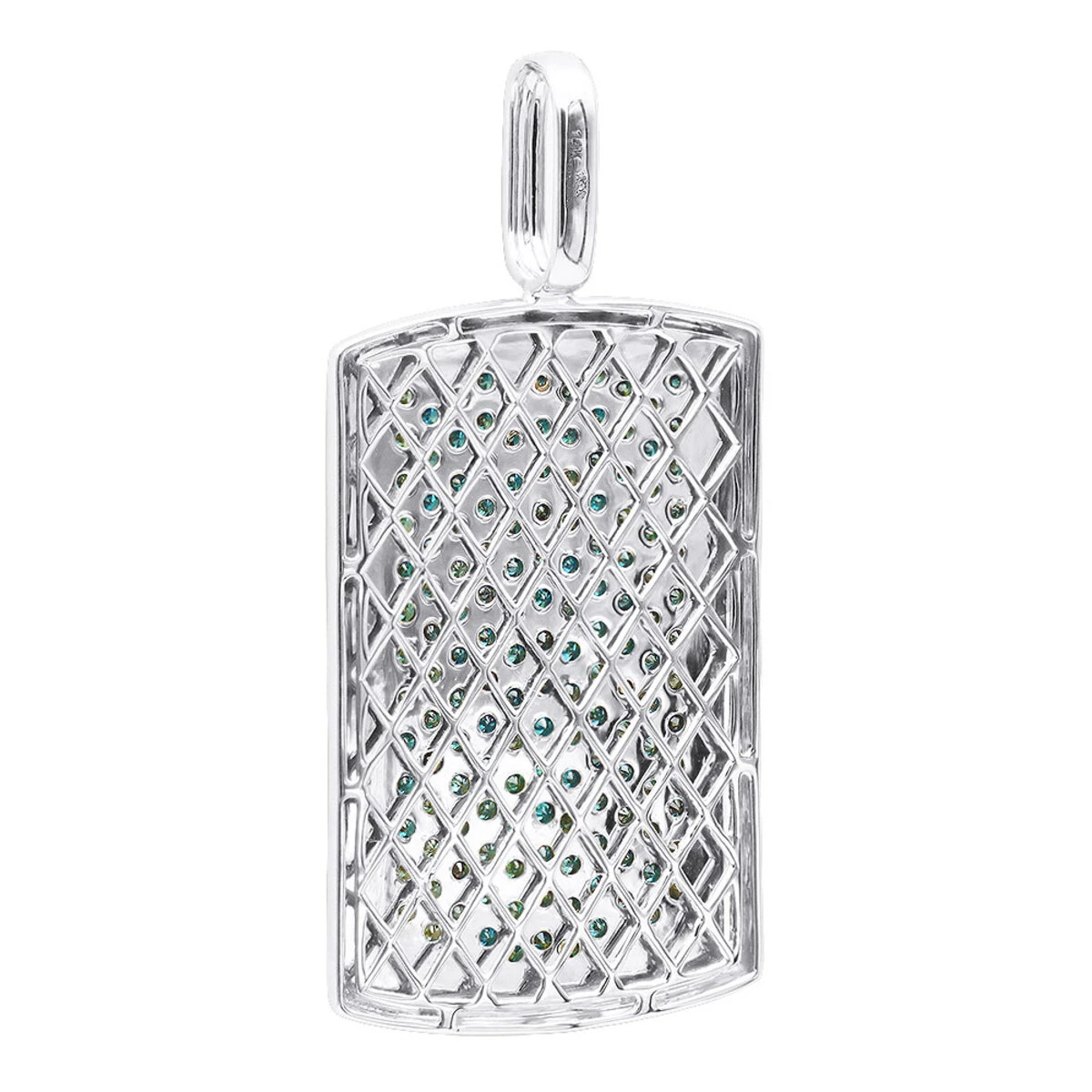 Unique 14K White Gold Blue Diamonds Dog Tag Pendant For Men 3.25ctw