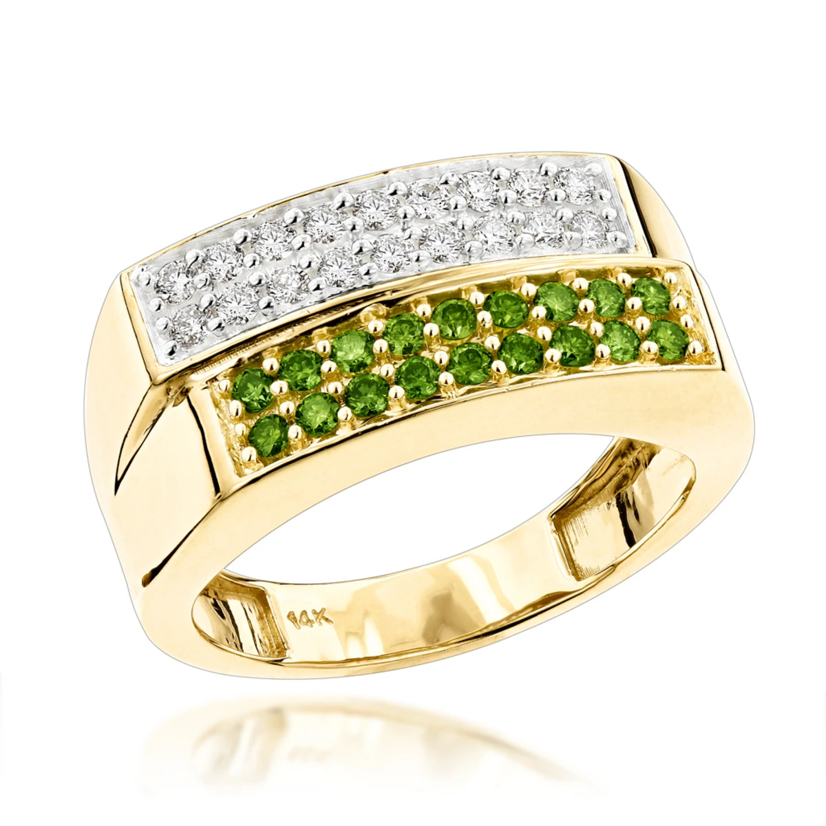 Unique 14K Yellow Gold White Green Diamond Ring For Men 1.1ct