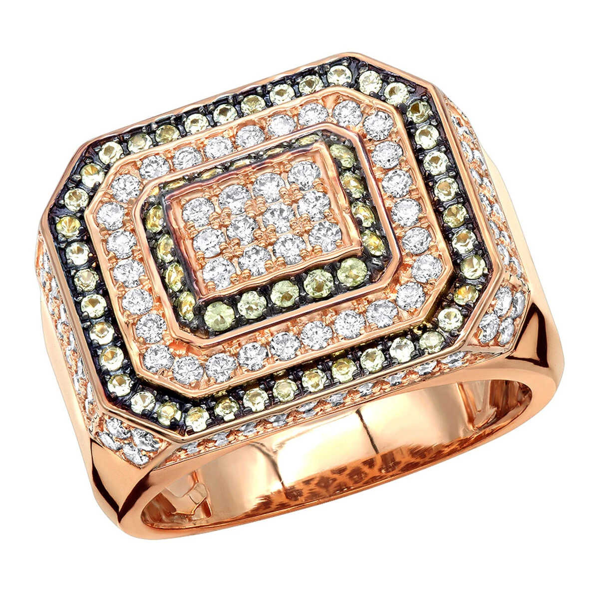 Unique Men’s Diamond Ring 14K Yellow Gold 2.65 Ct Yellow & White Diamonds