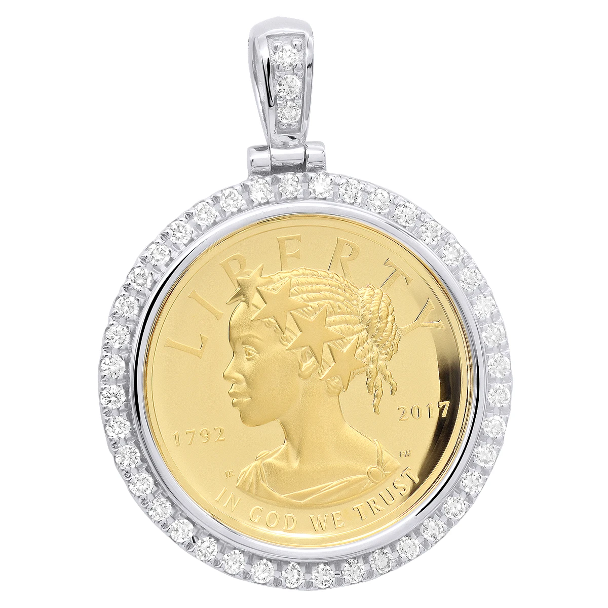 US Mint American Liberty 1oz 14K Yellow Gold Coin Pendant W Diamond Bezel 2ct 2017